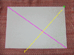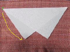 3.対角線上の頂点と紙の四角形の頂点を合わせるように内側に折り曲げます。