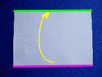 | 2.もういちど同じ方向に半分に折ります。(ピンクの線を緑の線につける) |
