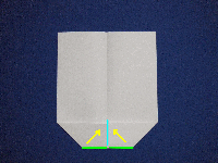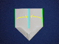 7.台形になった下の辺を中心の線に向かって折り曲げます。(