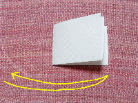 4.下の辺の横半分を、中心の折り目に合わせるように折り上げます。(