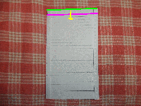 2.上の辺を先ほどより少し大きめに谷折りする。