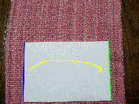 4.上の辺を、紙飛行機を折るみたいに左半分から中央の線に合わせて折り曲げます。(