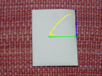15.真ん中の所にある横向きの線に向かって右上半分の辺を谷折りします。(