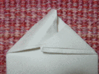 18.さっきと同じように△の先を一方のポケットの中に差し込んでおきます。